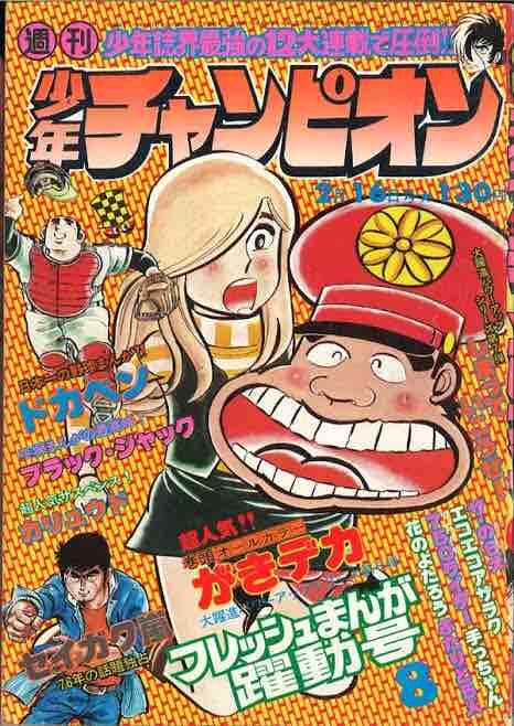 それと同時期に少年チャンピオンで連載してた鴨川つばめの「マカロニほうれん荘」も同じテイストなので、ワタクシはライバル誌の少年ジャンプを愛読しておりました。